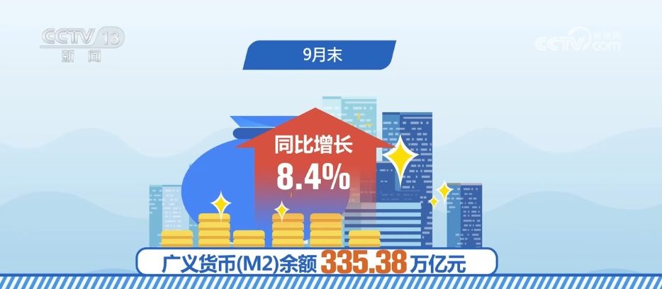 央视新闻记者:10月15日,中国人民银行发布9月份金融统计报告。数据显示,9月份社会融资和广义货币(M2)增速保持在较高水平,金融支持实体经济的力度也保持在较高水平。 9月末,广义货币(M2)余额335.38万亿元,同比增长8.4%。社会贷款余额437.8万亿元,比上年增长8.7%,保持较高增速。前三季度,社会融资累计增加30.9万亿元,人民币融资增加14.75万亿元。专家分析,今年国债发行速度加快,企业债发行、股权收购的路径更加开放。直接融资对扩大社会融资规模具有重要作用。特别是,政府企业债券对社会融资规模的支撑发挥着重要作用。民生银行首席经济学家文斌:同时,受益于科技创新债、民企债等政策支持力度加大,债券发行叠加利率处于较低水平,企业债发行融资力度加大,社会融资规模快速增长也得到有力支撑。 9月份企业贷款继续呈现良好增长态势。央行公布的数据显示,9月份信贷结构持续优化,商业贷款保持良好增长,居民信贷需求回升。 9月份,小微信贷综合贷款和制造业中长期贷款同比分别增长12.2%和8.2%,超过同期各项贷款增速。商业贷款保持良好增长企业的流动性和融资需求得到有效释放。招商协会首席研究员董小苗:近期,多地宣布完成首批政策性金融新产品推出,缓解了重点领域重大项目资金不足的问题,也促进了相关扶持信贷资金的增长。另一方面,9月份开始,个人消费贷款和服务业贷款降息政策启动,进一步拉动消费贷款需求,居民信贷需求有所恢复。 9月份贷款利率维持在较低水平。央行公布的数据显示,今年以来利率维持在较低水平,实体经济融资需求相对满足。 9月份新增企业贷款平均利率在3.1%左右,比上年低40个基点左右去年同期韩。新增个人按揭贷款平均利率约为3.1%,与去年同期相比。贷款利率持续走低,下降约25个基点。中华贸易商协会首席研究员董小苗:适度宽松的货币政策依然有力,存款准备金率、降息等一系列货币政策效应持续显现。信贷利率保持较低水平,企业融资成本稳中有降,为实体经济发展创造了适宜的金融货币环境。