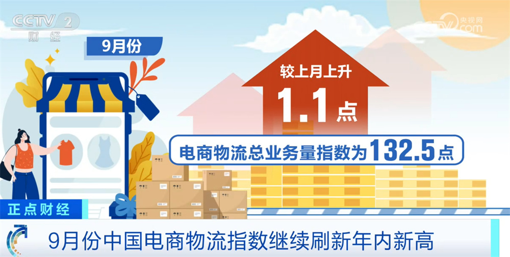 央视网消息:16日,中国采购物流联合会发布9月份中国电子商务物流指数。中国电商物流指数持续逐月上升,继续创今年新高。 9月份中国电商物流指数为112.7点,比上月上升0.4点,创今年新高。从分项指数看,9月份综合电商物流成交指数为132.5点,比上月上升1.1点。分地区看,除东部地区外,其他地区均有所回升,其中中部地区增幅最大。欧共体物流综合周转指数环比上升3.5点。 “我国电商物流指数连续7个月保持增长,创今年新高。”这种持续回升反映了全社会电商行业需求的持续增长,“体现了经济活力的不断提升。”中国物流信息中心主任刘宇航表示。专家表示,多种因素正在推动需求上升。国庆、中秋出行准备伴随着多种需求,其中就包括季节性消费。同时,9月份也是开学消费的开端,人们对线上消费的热情会更高。从线上消费类别来看, 月饼销售、文化旅游、文化遗产产品等强势。汽车用品、节日礼品、旅游用品等销售旺盛,秋季消费逐渐增多。